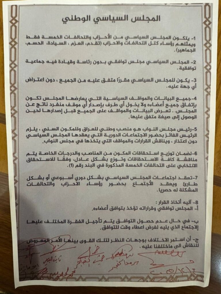 حصلت وكالة “الناعور برس” على نسخة من الاتفاق السياسي الموقَّع بين أعضاء المجلس السياسي الوطني، والذي جرى على أساسه تشكيل المجلس، قبل أن تُقدم الأطراف الموقِّعة نفسها، اليوم، على الإخلال ببنوده، في تجاوز واضح للتعهدات والالتزامات التي تم الاتفاق عليها سابقاً.