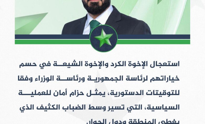 وأشار الكربولي إلى أن الالتزام بالمسارات الدستورية يشكّل “حزام أمان” للعملية السياسية، ولا سيما في ظل الضباب الكثيف الذي يخيّم على المنطقة ودول الجوار، ما يستدعي قرارات مسؤولة تعزز الاستقرار وتحمي مصالح العراق.