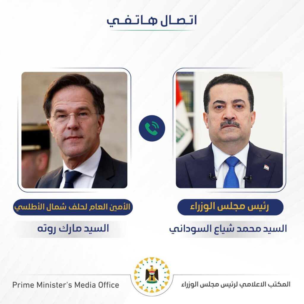 وذكر بيان لمكتب السوداني، ان “روته عبر عن تقديره للمواقف العراقية، وجهود حماية البعثات الدبلوماسية، مؤكداً الشراكة البناءة بين حلف شمال الأطلسي والعراق، واستمرار العمل مع الدول المختلفة لوقف الحرب”.