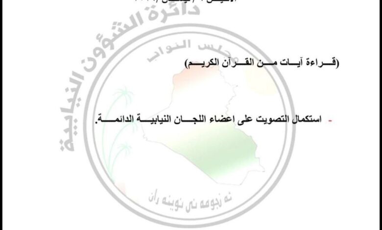 حدد مجلس النواب العراقي يوم الاثنين، موعدا لعقد جلسته المقبلة، وتضمن جدول الاعمال استكمال التصويت على اللجان النيباية.