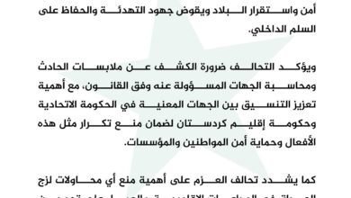 تحالف العزم يدين استهدف منزل رئيس إقليم كردستان.. “تجاوز خطير يهدد أمن البلاد”
